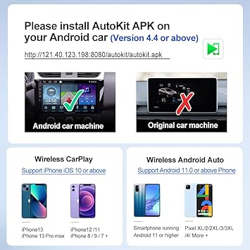 Carlinkit Wireless Carplay Wireless Android Auto Adapter Fur Aftermarket Android Radio Version 4 4 Apk Auf Dem Auto Installieren Unterstutzung Wired Mirroring Ios 15 Amazon De Kuche Haushalt Wohnen