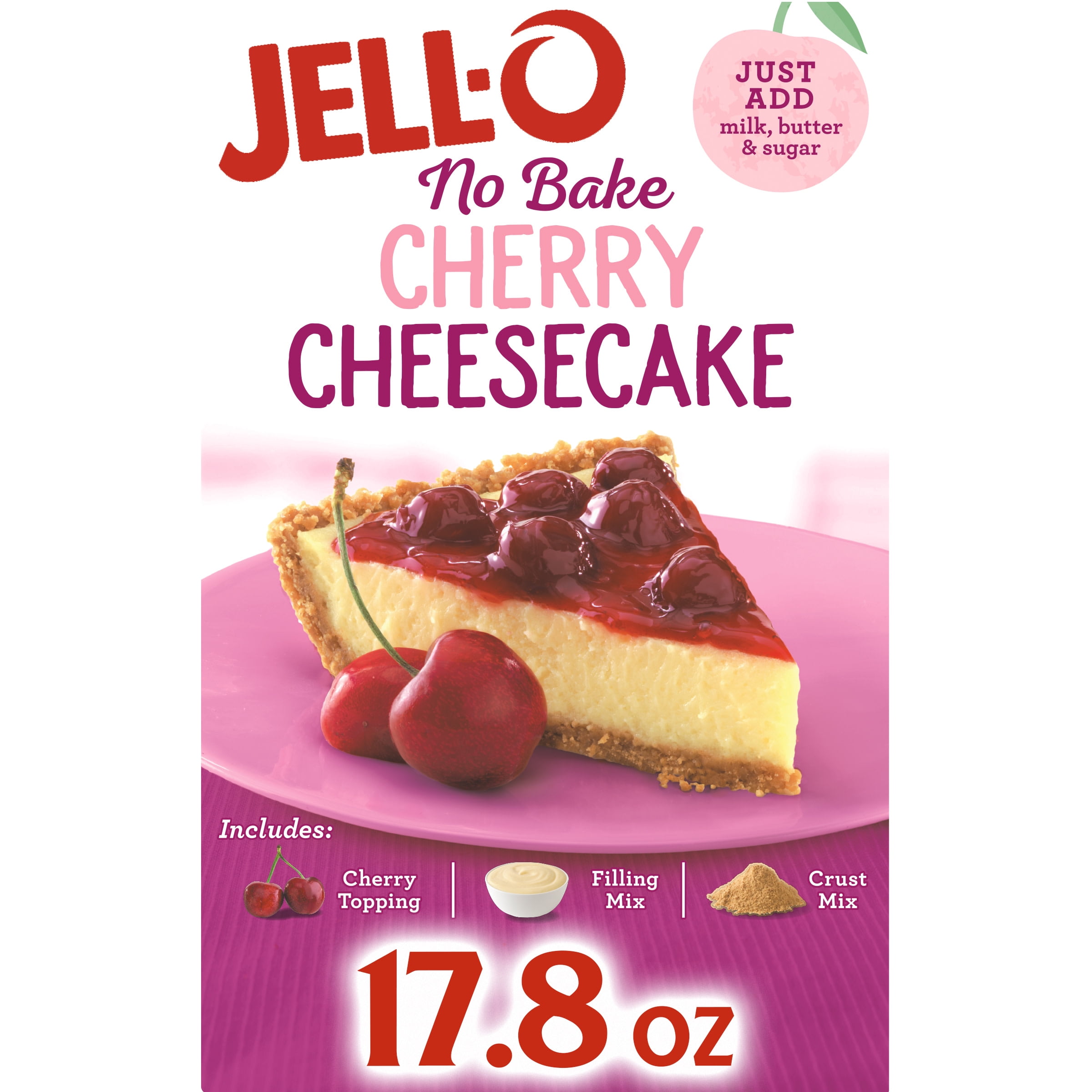 Jell O No Bake Cherry Cheesecake Dessert Kit With Cherry Topping Filling Mix Crust Mix 17 8 Oz Box Walmart Com